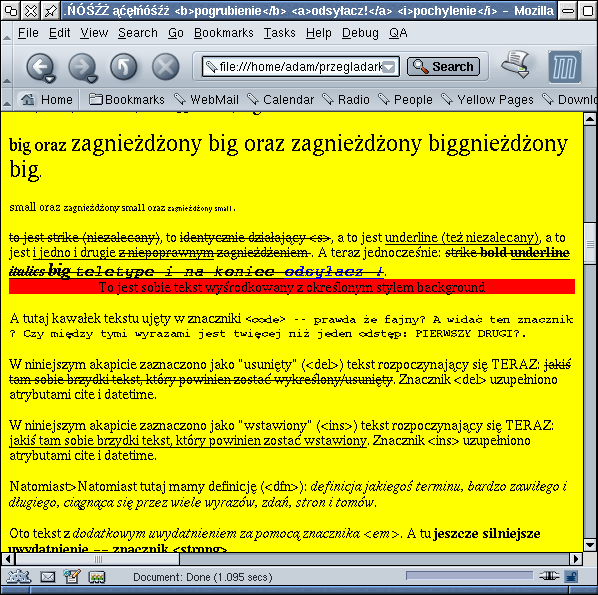 Mozilla doskonale radzi sobie ze znacznikami formatującymi oraz logicznie opisującymi zawartość.
