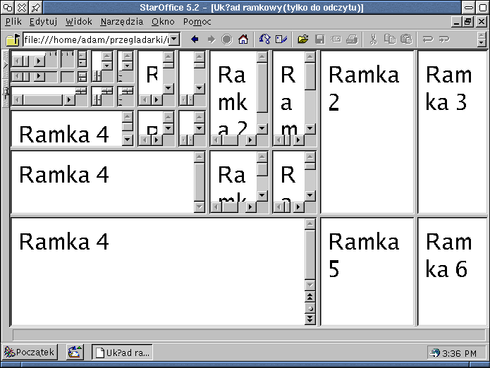 Prawie wszystkie przeglądarki radzą sobie z wielokrotnie zagnieżdżanymi ramkami. Tutaj -- jak to się robi w StarOffice.